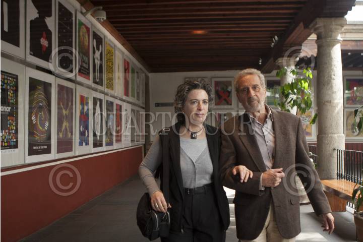 MÉXICO, D.F., 30OCTUBRE2012.- El diseñador gráfico, pionero de la disciplina en México por casi 60 años, recibió la medalla "José Guadalupe Posada" la mañana de hoy en el Museo Franz Mayer en el marco del XII Bienal del Diseño Gráfico, lo acompañó su esposa Barbara Jacobs. FOTO: FRANCISCO RODRÍGUEZ /CUARTOSCURO.COM