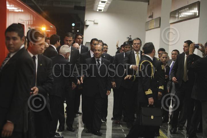 MÉXICO, D.F., 30OCTUBRE2012.- Enrique Horcasitas, ingeniero y Francisco Bojorquez director del metro, durante la inauguración la línea de 12 del Sistema de transporte Colectivo Metro. FOTO: SAÚL LÓPEZ /CUARTOSCURO.COM