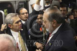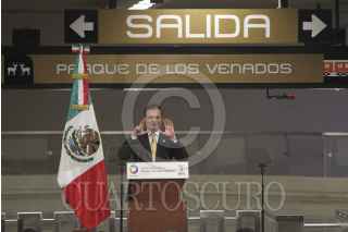 MÉXICO, D.F., 30OCTUBRE2012.- Enrique Horcasitas, ingeniero y Francisco Bojorquez director del metro, durante la inauguración la línea de 12 del Sistema de transporte Colectivo Metro. FOTO: SAÚL LÓPEZ /CUARTOSCURO.COM