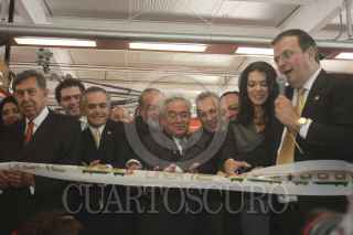 MÉXICO, D.F., 30OCTUBRE2012.- Cuahutemoc Cárdenas Solorzano, Armando Ríos Piter, Miguel Ángel Mancera, Carlos Slim Helú, Bernardo Quintero, Earl Anthony Wayne, Jesus Zambrano, Rosalinda Bueso y Marcelo Ebrard, durante el corte de listón en la inauguración de la linea 12 del Sistema de Transporte Colectivo Metro. FOTO: CUARTOSCURO.COM