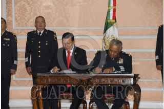 MÉXICO, D.F., 30OCTUBRE2012.- La Secretaría de la Defensa Nacional ampliará sus programas y acciones de capacitación y profesionalización del personal militar para fortalecer una cultura de respeto y observancia de los derechos humanos en todas las actividades que realizan. Para ello, los titulares de la Sedena y de la Comisión Nacional de los Derechos Humanos (CNDH) Guillermo Galván Galván y Raúl Plascencia Villanueva, respectivamente, firmaron un convenio específico de colaboración. FOTO: CUARTOSCURO.COM