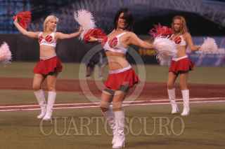 MEXICO D.F. 25MAYO2005.- En el foro sol , se enfrentaron en el segundo de la serie entre Diablos Rojos del México y los Tuneros de San Luis Potosi. Las porristas de los Diablos Rojos, durante su baile. FOTO: Germàn Romero/CUARTOSCURO.COM