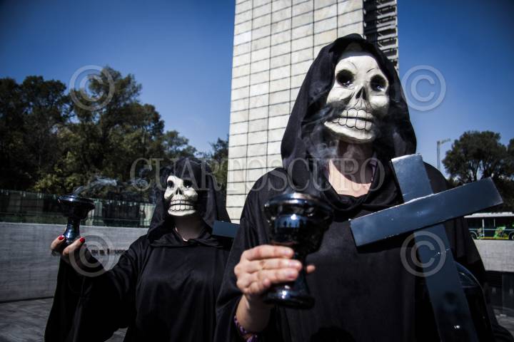 MÉXICO, D.F., 31OCTUBRE2012.-Ofrenda de muertos en protesta por el más de medio millón de muertos por diabetes por parte de asociación civil el Poder del Consumidor en contra del Presidente de la República Felipe Calderón Hinojosa en la Secretaría de Salud. FOTO: CHRISTIANN DAVIS /CUARTOSCURO.COM