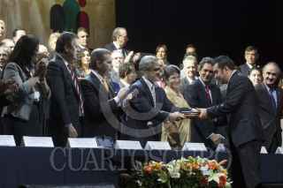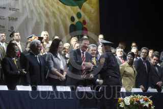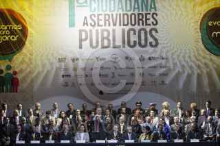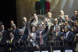 MÉXICO, D.F., 31OCTUBRE2012.- Manuel Granados, coordinador de los diputados locales del PRD, Alejandro Martí, Rosalinda Bueso, esposa del Jefe de Gobierno, Marcelo Ebrard Casaubón, Jefe de Gobierno, Luis Wertman, presidente del Consejo Ciudadano de Seguridad Pública y Procuración de Justicia del Distrito Federal, Y Miguel Ángel Mancera, Jefe de Gobierno electo, entregaron los reconocimientos de 1a Premiación Ciudadana a Servidores Públicos, en el Teatro Metropolitan. FOTO: MOISÉS PABLO /CUARTOSCURO.COM