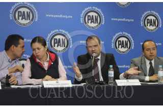 MÉXICO, D.F., 01NOVIEMBRE2012.- Hector Saúl Tellez, Priscila Vera Gernández, Christian Von Roehrich y Edgar Borja, asambleístas del PAN, dieron detalles sobre la problemática de la ruptura de la membrana en el bordo poniente. FOTO: SAÚL LÓPEZ /CUARTOSCURO.COM