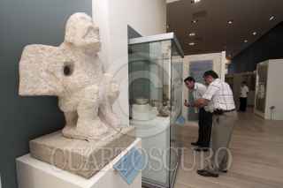 CANCÚN, QUINTANA ROO, 01NOVIEMBRE2012.- Hoy se inauguraron el Museo Maya de Cancún, ubicado en el Boulevard Kukulcán de la Zona Hotelera, con una inversión fue de casi 200 millones de pesos tanto para el rescate de la zona arqueológica de San Miguelito, contigua al museo, como para la construcción del recinto, que cuenta con un acervo de más de 3,500 piezas provenientes de zonas arqueológicas de Quintana Roo, Campeche y Yucatán. Una de las tres salas del recinto tendrá exposiciones temporales, como la de las Máscaras Divinas. FOTO: CSPHOTO /CUARTOSCURO.COM