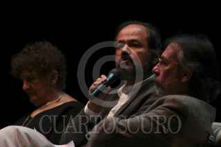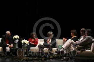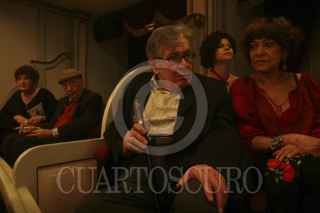 OAXACA, OAXACA, 01NOVIEMBRE2012.- El escritor y poeta mexicano, José Emilio Pachecho recibió la noche de este jueves un homenaje por su trayectoria y aportación a la literatura mexicana en el marco de la 32º Feria Internacional del Libro de Oaxaca (FILO). Dicho acto se realizó en el teatro Macedonio Alcalá y contó con la presencia de los escritores, Margo Glantz, Sergio Pitol y Juan Villoro. FOTO: ARTURO PÉREZ ALFONSO /CUARTOSCURO.COM
