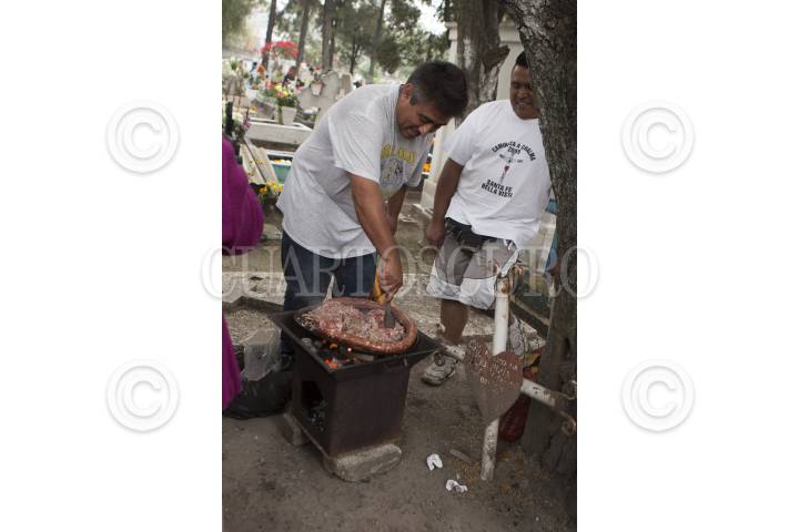 MÉXICO, D.F., 02NOVIEMBRE2012.- El día de hoy miles de capitalinos celebran el día de muertos y acuden a los diversos panteones y mausoleos ubicados en la capital para honrar a sus seres queridos. El panteón de Guadalupe Mixcoac vió el arribo de cientos de personas que repararon, pintaron y colocaron decenas de flores de cempasuchil y nube principalmente, algunos llevaron música, y cocinaron carne asadas para acompañar a los que ya no están entre nosotros. FOTO: FRANCISCO RODRÍGUEZ /CUARTOSCURO.COM