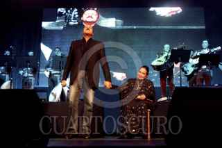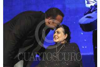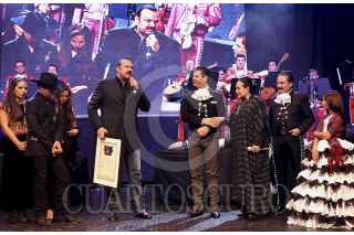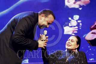 ZACATECAS, ZAC.,04NOVIEMBRE2012.- Pepe Aguilar y su madre Flore Silvestre, recibieron anoche, en el teatro Calderón un reconocimiento por su invaluable trayectoria artística y musical por parte del gobernador Miguel Alonso Reyes, en el marco del Congreso y Campeonato Nacional Charro. FOTO: ESPECIAL/CUARTOSCURO.COM