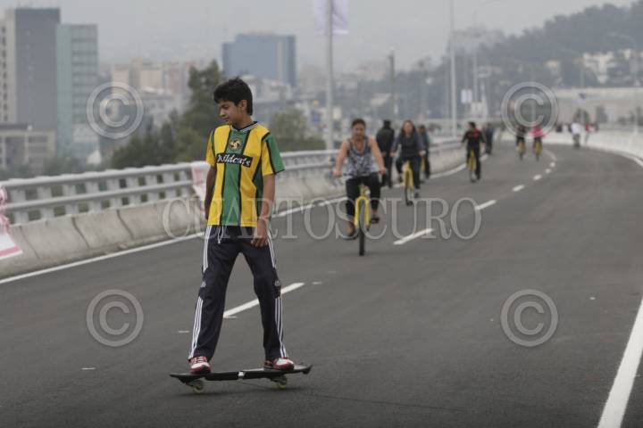 MÉXICO, D.F., 04NOVIEMBRE2012.- La Secretaría de Obras y Servicios, abrio a peatones y ciclistas en el Tramo II de la Autopista Urbana Sur, que va de Zacatépetl a Circuito Aztecas. Fué aprovechado por familias, jóvenes y sus mascotas y algunos choferes de RTP. FOTO: JUAN PABLO ZAMORA /CUARTOSCURO.COM