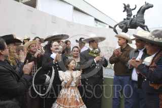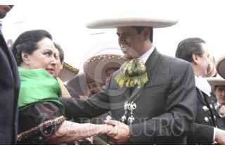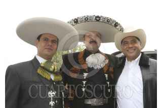 ZACATECAS, ZACATECAS 04NOVIEMBRE2012.- Los Gobernadores Miguel Alonso Reyes, de Zacatecas, Jorge Herrera Caldera, de Durango, y Roberto Sandova Castañedal, de Nayarit, acompañados por los integrantes de la familia Aguilar Jiménez develaron la escultura ecuestre de Don Antonio Aguilar Barraza, que se encuentra en la Plaza Tayahua en las inmediaciones del Monumental Lienzo Charro que también lleva su nombre. El acto como parte de las actividades del LXVIII Congreso y Campeonato Nacional Charro “Zacatecas 2012”, se congregaron en ese lugar Flor Silvestre, viuda de El Charro de México, Antonio Aguilar hijo, Pepe Aguilar. FOTO: CUARTOSCURO.COM
