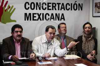 MÉXICO, D.F., 05NOVIEMBRE2012.- Ramón Sosa montes junto a Manuel Espino, Rene Arce, Jorge Carlos Díaz Cuervo y durante la conferencia donde anunciaron su proyecto de crear un nuevo partido politico llamado Concertacion Mexicana. FOTO: ENRIQUE ORDÓÑEZ /CUARTOSCURO.COM