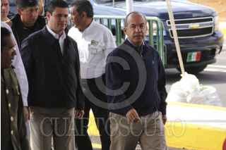 ZACATECAS, ZACATECAS 05NOVIEMBRE2012.- El presidente Felipe Calderón Hinojosa y el gobernador Miguel Alonso Reyes inauguraron el Distribuidor Vial Aeropuerto en el que se invirtieron 80 millones de pesos, y forma parte de la estrategia para detonar el desarrollo sustentable de la región Guadalupe-Fresnillo. FOTO: ALEJANDRO ORTEGA NERI /CUARTOSCURO.COM