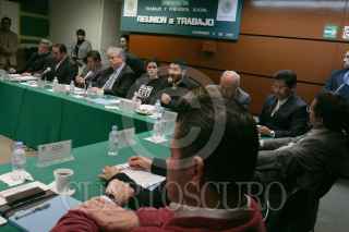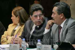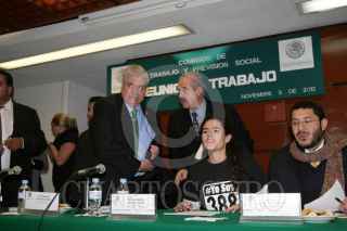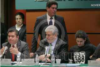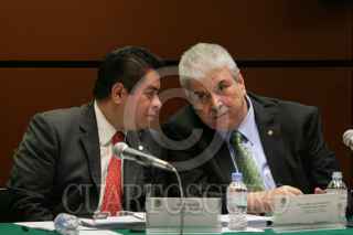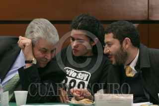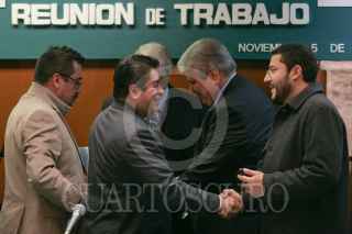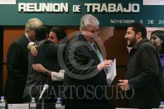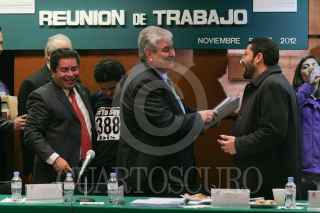 MÉXICO, D.F. 05NOVIEMBRE2012.-Los diputados priistas Fernando Salgado Delgado y Carlos Humberto Aceves del Olmo, se despiden de Martí Batres, del PRD, al finalizar la reunión de la Comisión de Trabajo y Previsión Social de la Cámara baja, donde se discutió la Reforma laboral devuelta por el Senado. FOTO: JUAN PABLO ZAMORA /CUARTOSCURO.COM