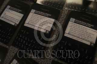 OAXACA, OAXACA, 06NOVIEMBRE2012.- Estudiantes de la Facultad de Idiomas de la UABJO, quienes aseguraron ser integrantes del consejo técnico, presentaron una serie de pruebas en las que relacionan al rector Eduardo Martínez Helmes y al director de esta facultad Diego González Algara, con el ataque de porros ocurrido a principios del mes de octubre en sus instalaciones. Según lo señalado por los jóvenes se encontró un celular que perteneció a González Algara que contiene los mensajes que supuestamente los incriminan. Las fotografías y celular les fue entregado de forma anónima en las instalaciones de la facultad, las cuales mantienen tomadas. FOTO: ARTURO PÉREZ ALFONSO /CUARTOSCURO.COM