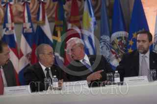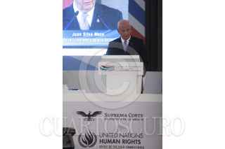 MÉXICO, D.F., 08NOVIEMBRE2012.- Hoy arrancó la Cumbre de Presidentes de Cortes Supremas Constitutcionales y Regionales a realizarse en esta capital, donde el presidente Ministro de la Suprema Corte de Justicia de la Nación y del Consejo de la Judicatura Federal, Juan N. Silva Meza, dió el dirscurso inaugural. Ante más de 30 representantes de Cortes y jueces de las Corte Penal Internacional y la Corte Internacional de Derechos Humanos, el ministro presidente Silva Meza destacó la importancia del encuentro y del intercambio de opiniones y experiencias entre iguales. Además de que "nadie ni nada debe estar por encima del derecho d elas personas" Al final se tomaron la foto oficial en las escalinatas principales de la Suprema Corte de Justicia. FOTO: FRANCISCO RODRÍGUEZ /CUARTOSCURO.COM