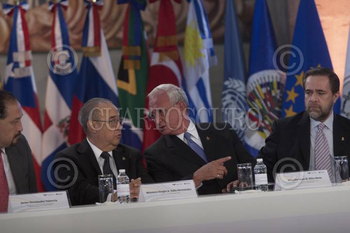 MÉXICO, D.F., 08NOVIEMBRE2012.- Hoy arrancó la Cumbre de Presidentes de Cortes Supremas Constitutcionales y Regionales a realizarse en esta capital, donde el presidente Ministro de la Suprema Corte de Justicia de la Nación y del Consejo de la Judicatura Federal, Juan N. Silva Meza, dió el dirscurso inaugural. Ante más de 30 representantes de Cortes y jueces de las Corte Penal Internacional y la Corte Internacional de Derechos Humanos, el ministro presidente Silva Meza destacó la importancia del encuentro y del intercambio de opiniones y experiencias entre iguales. Además de que "nadie ni nada debe estar por encima del derecho d elas personas" Al final se tomaron la foto oficial en las escalinatas principales de la Suprema Corte de Justicia. FOTO: FRANCISCO RODRÍGUEZ /CUARTOSCURO.COM