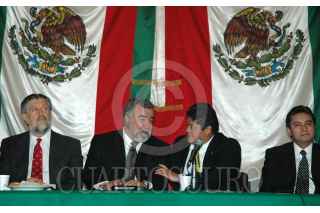 MEXICO, D.F. 02JUNIO2005.- Javier Quijano, Alejandro Encinas, secretario de gobierno, Carlos Gamiz y Jorge Alberto Lara Rivera realizaron una conferencia en la ALDF. FOTO: Iván Stephens/CUARTOSCURO.COM
