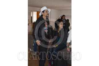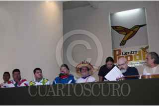 MÉXICO, D.F., 08NOVIEMBRE2012.- Roco Pachukote y Moyenei Valdés quienes forman el proyecto Sonidero Mestizo, durante la coferencia de prensa del Consejo Regional Wixarika, en la cual exigieron se prohíba cualquier actividad minera y se reconozcan los derechos de su pueblo y de los habitantes de Wirikuta, en el Centro de Derechos Humanos Miguel Agustín Pro Juárez. FOTO: SANDRA PÉREZ /CUARTOSCURO.COM