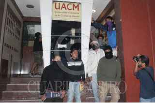 MÉXICO, D.F., 08NOVIEMBRE2012.- Integrantes del Consejo Estudiantil de Lucha de la Universidad Autónoma de la Ciudad de México, tomaron las instalaciones administrativas de la casa de estudios en demanda de la firma de la rectora, Esther Orozco, de los acuerdos realizados en los diálogos en la Casa Lamm entre los paristas, rectoría y autoridades capitalinas. FOTO: DIEGO SIMÓN SÁNCHEZ /CUARTOSCURO.COM