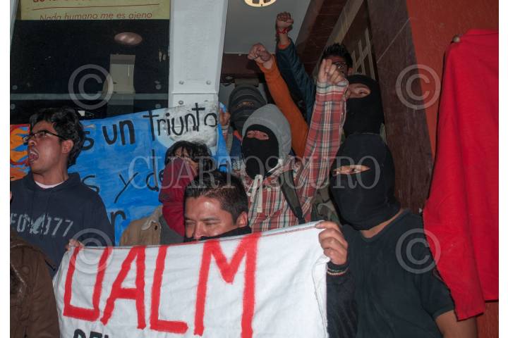 MÉXICO, D.F., 09NOVIEMBRE2012.- Paristas, en su mayoría encapuchados, de la Universidad Autónoma de la Ciudad de México tomaron las instalaciones de la sede administrativa de la UACM ubicada en Eugenia esquina con División del Norte, exigiendo a la rectora de la universidad, Esther Orozco, renuncie a su cargo. FOTO: DIEGO SIMÓN SÁNCHEZ /CUARTOSCURO.COM