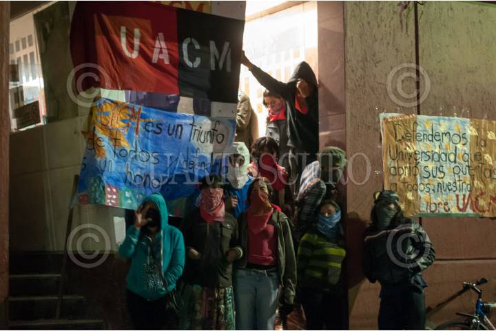 MÉXICO, D.F., 09NOVIEMBRE2012.- Paristas, en su mayoría encapuchados, de la Universidad Autónoma de la Ciudad de México tomaron las instalaciones de la sede administrativa de la UACM ubicada en Eugenia esquina con División del Norte, exigiendo a la rectora de la universidad, Esther Orozco, renuncie a su cargo. FOTO: DIEGO SIMÓN SÁNCHEZ /CUARTOSCURO.COM