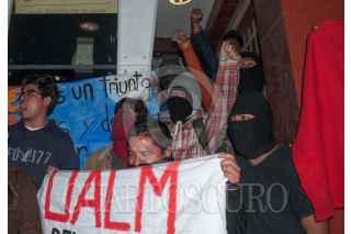 MÉXICO, D.F., 09NOVIEMBRE2012.- Paristas, en su mayoría encapuchados, de la Universidad Autónoma de la Ciudad de México tomaron las instalaciones de la sede administrativa de la UACM ubicada en Eugenia esquina con División del Norte, exigiendo a la rectora de la universidad, Esther Orozco, renuncie a su cargo. FOTO: DIEGO SIMÓN SÁNCHEZ /CUARTOSCURO.COM