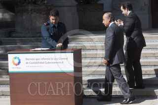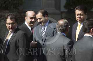 MÉXICO, D.F., 09NOVIEMBRE2012.- Luis Alberto Villareal, coordinador de los diputados federales del PAN, y Ernesto Cordero Arroyo, presidente de la mesa directiva del Senado de la República, en la ceremonia en donde se firmo el decreto que reforma la Ley General de Contabilidad Gubernamental, iniciativa que mando el Jefe del Ejecutivo en calidad de preferente. FOTO: MOISÉS PABLO /CUARTOSCURO.COM