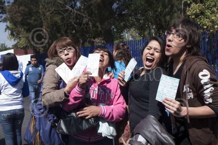 MÉXICO, D.F., 09NOVIEMBRE2012.- Unos jovenes muestran su boleto para la banda juvenil de pop, "One Direction" que se presentará en el Foro Sol el próximo 9 de Junio del año entrante. La taquilla electrónica se agotó en tan solo unas horas el día de ayer y hoy se abrió para el público en general, lo que motivo que muchos jovenes y sus padres arribaran a las inmediaciones del domo de cobre aproximadamente a las 05 hrs de hoy. FOTO: FRANCISCO RODRÍGUEZ /CUARTOSCURO.COM