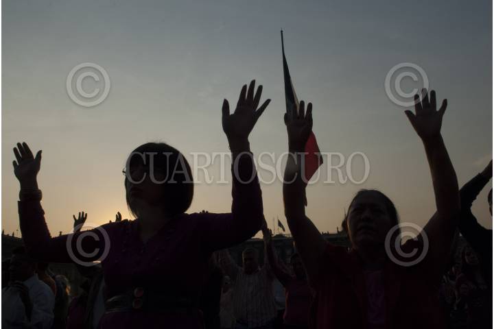 MÉXICO, D.F., 10NOVIEMBRE2012.- Se llevó a cabo en el Zócalo capitalino la 8va. edición del Día Nacional de Oración por México, convocada por la comunidad cristiana del país, en la que piden por la prosperidad de México en el próximo periodo sexenal, cumpliendo con una jornada de 12 horas de oración. FOTO: JOYCE GARCÍA /CUARTOSCURO.COM