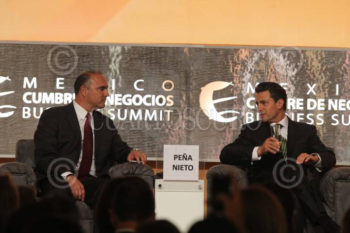 QUERETARO, QUERETARO, 11OCTUBRE 2012.- Enrique Peña Nieto, presidente electo de México acompañado de Miguel Alemán Velazco, durante la decima edición de México, Cumbre de Negocios “Impulsos para un México Desarrollado”, realizado en salón plenario del centro de negocios de Queretaro. Alemán Velazco, durante su ponencia le entregó un recado a Enrique Peña Nieto del ex presidente de los estados Unidos Bill Clinton. FOTO: SAÚL LÓPEZ /CUARTOSCURO.COM