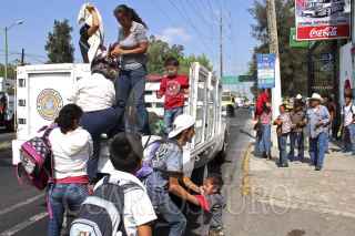 GUADALAJARA, JALISCO 12NOVIEMBRE2012.- El día de hoy algunas rutas de transporte público pararon labores ya que las peticiones, que consistían en un incremento al servicio, han sido ignoradas por las autoridades. Desde temprana hora miles de usuarios fueron trasladados por vehículos oficiales del Gobierno. FOTO: FERNANDO CARRANZA /CUARTOSCURO.COM
