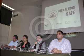 MÉXICO, D.F., 13NOVIEMBRE2012.- Dario Martinez, Griselda Vega, Leticia Gutiérrez y José Martínez, presentaron en conferencia de prensa el informe del Proyecto Jornaleros Safe, donde cinco organizaciones de México y Estados Unidos, investigaran las condiciones laborales y contrataciones de trabajadores agrícolas temporales con visa H2A. FOTO: SAÚL LÓPEZ /CUARTOSCURO.COM