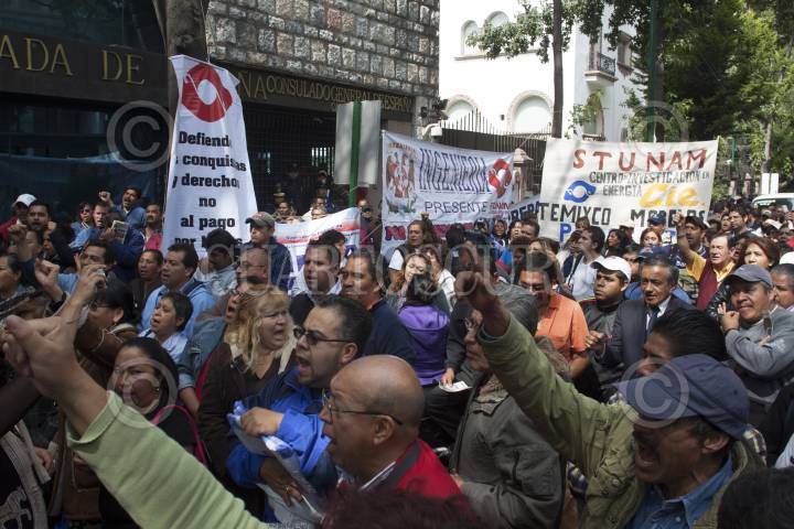 MÉXICO, D.F., 14NOVIEMBRE2012.- Trabajadores del Sindicato de Trabajadores de la Universidad Nacional Autónoma de México se manifestaron afuera de la embajada de España, que se ubica en la calle de Galileo en Polanco, esto en solidaridad por la huelga general que se vive en aquel país generada por la crisis y los recortes gubernamentales. FOTO: MOISÉS PABLO /CUARTOSCURO.COM