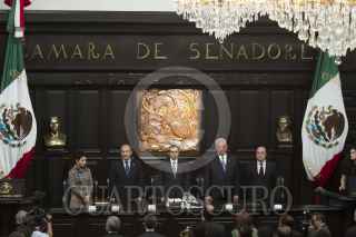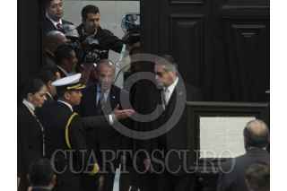 MÉXICO, D.F., 14NOVIEMBRE2012.- Carlos Slim, Presidente del Grupo Carso a su salida de la sesión solemne en el Senado de la República, donde fue entregó post mortem la medalla Belisario Domínguez al humanista, escritor y lingüista, Ernesto de la Peña, la cual fue recibida por María Luisa Tavernier, viuda de Ernesto de la Peña. FOTO: GUILLERMO PEREA /CUARTOSCURO.COM