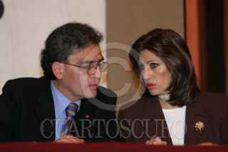 MEXICO, D.F. 03JUNIO2005.- Guillermo Velazquez Arzac y Laura Elena Herrejón integrantes de la organización Rescatemos México, previó a una conferencia de prensa que ofrecieron con motivo del primer aniversario de la Gran Marcha Ciudadana. FOTO: Nelly Salas/CUARTOSCURO.COM
