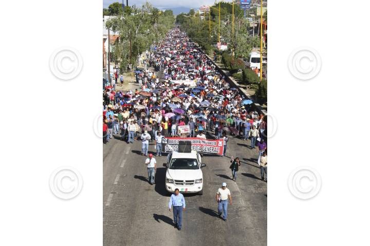 OAXACA, OAXACA, 15NOVIEMBRE2012.- Integrantes del FPR, Sección 22 del SNTE y diversas organizaciones marcharon para protestar en contra del 2º Informe de gobierno del Ejecutivo, Gabino Cué al considerar que no se esta diciendo la verdad de lo que ocurre en Oaxaca. FOTO: ARTURO PÉREZ ALFONSO /CUARTOSCURO.COM
