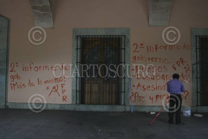 OAXACA, OAXACA, 15NOVIEMBRE2012.- Integrantes del FPR, Sección 22 del SNTE y diversas organizaciones marcharon para protestar en contra del 2º Informe de gobierno del Ejecutivo, Gabino Cué al considerar que no se esta diciendo la verdad de lo que ocurre en Oaxaca. FOTO: ARTURO PÉREZ ALFONSO /CUARTOSCURO.COM
