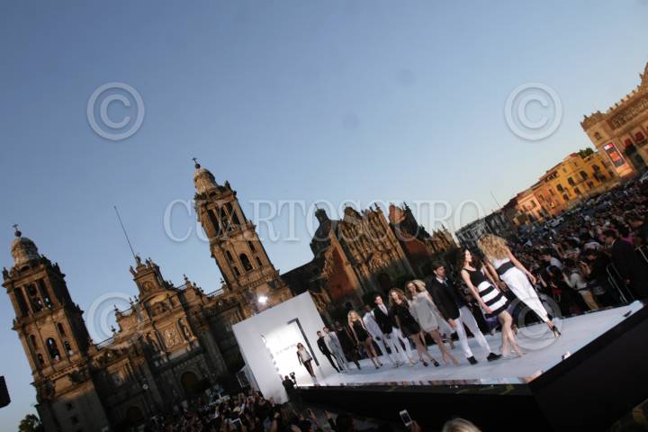 MÉXICO, D.F. 16NOVIEMBRE2012.- Se llevó a cabo el “Rock the Sidewalk” en el Zócalo capitalino,con el cual finalizó el Mercedes Fashion Week México. Consistente en un desfile al aire libre y gratuito en la plancha, así como la filmación de una campaña publicitaria de EXPRESS Primavera 2013. Esa marca ha realizado desfiles similares en Nueva York, Las Vegas, Miami y Chicago. FOTO: JUAN PABLO ZAMORA /CUARTOSCURO.COM