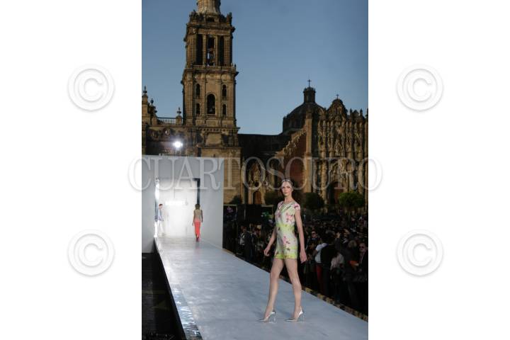 MÉXICO, D.F. 16NOVIEMBRE2012.- Se llevó a cabo el “Rock the Sidewalk” en el Zócalo capitalino,con el cual finalizó el Mercedes Fashion Week México. Consistente en un desfile al aire libre y gratuito en la plancha, así como la filmación de una campaña publicitaria de EXPRESS Primavera 2013. Esa marca ha realizado desfiles similares en Nueva York, Las Vegas, Miami y Chicago. FOTO: JUAN PABLO ZAMORA /CUARTOSCURO.COM