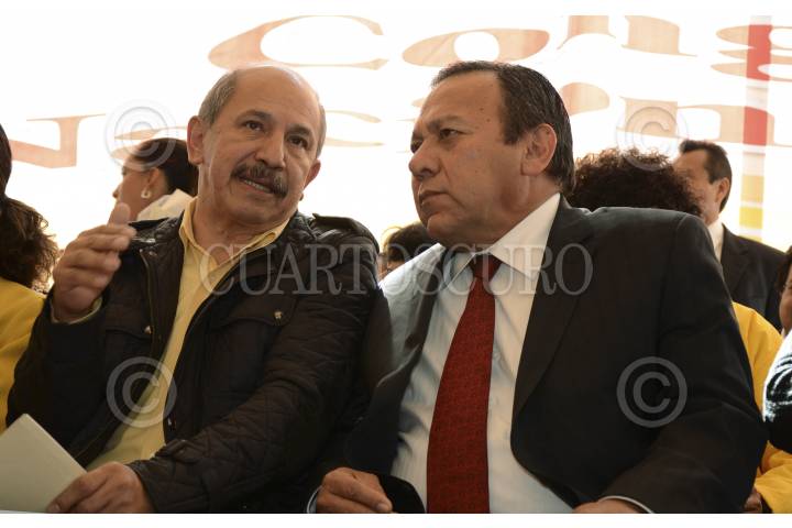 MÉXICO, D.F., 17NOVIEMBRE2012.- Armando Quintero, secretario de Vialidad y Transporte, Jesús Zambrano, dirigente nacional del PRD, Elizabeth Mateos, delegada de Iztacalco, Jesús Ortega, ex-presidente del partido, y Manuel Oropeza, dirigente capitalino del PRD, participaron en la ceremonia de clausura del Congreso 2012 UNyR, de la corriente Unidad y Renovación que encabeza Armando Quintero, realizado en el Sala de Armas de la Ciudad Deportiva. FOTO: CUARTOSCURO.COM