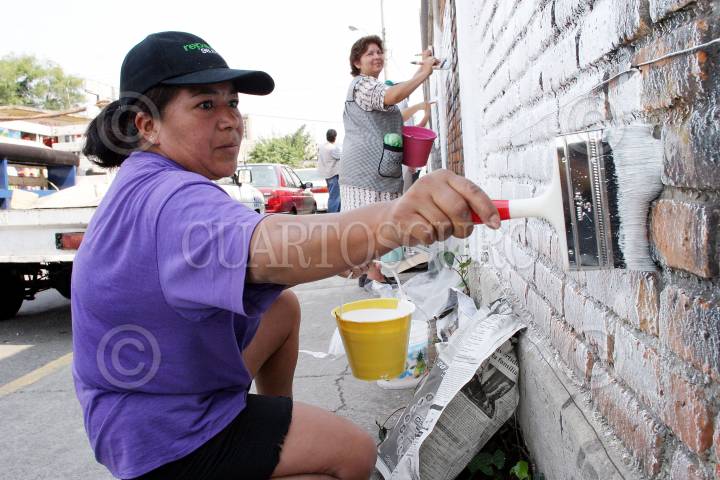 MÉXICO, D.F. 04JUNIO2005.- Vecinos de la delegación Magdalena Contreras pintan la barda de la primaria Profesora Guadalupe Flores Alonso como parte del programa "Comunidades sin grafiti" encabezado por la SSP-DF FOTO: Miguel Dimayuga Meneses/CUARTOSCURO.COM