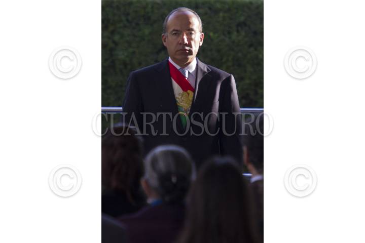 MÉXICO, D.F., 20NOVIEMBRE2012.- Felipe Calderón Hinojosa, Presidente de México, encabezó la ceremonia conmemorativa del CII Aniversario del Inicio de la Revolución Mexicana, en la explanada del monumento a Francisco I. Madero, en la residencia oficial de Los Pinos. FOTO: MOISÉS PABLO /CUARTOSCURO.COM