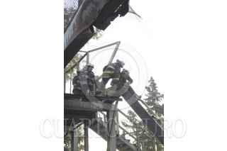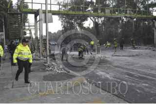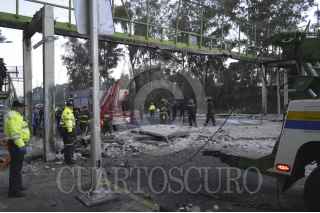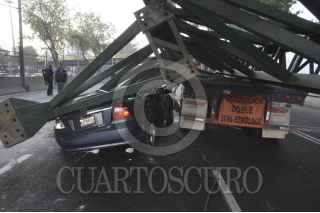 MÉXICO, D.F., 20NOVIEMBRE2012.- Un trailer que trasportaba estructuras metálicas choco contra un puente peatonal sobre Calzada de Tlalpan entre la calle de Puerto Rico y Miguel Ángel de Quevedo, esto en la colonia del Parque San Andrés de delegación Coyoacan. FOTO: IVÁN MENDEZ /CUARTOSCURO.COM