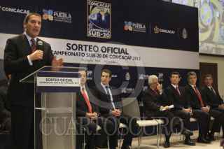 PUEBLA, PUEBLA, 21NOVIEMBRE2012.- El gobernador Rafael Moreno Valle asistió el sorteo donde se dieron a conocer los equipos y los grupos de los participantes del pre-mundial de fútbol Sub-20, que se llevará a cabo en la ciudad en febrero de 2013. FOTO: HILDA RÍOS /CUARTOSCURO.COM