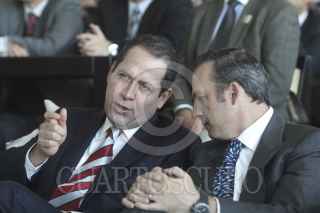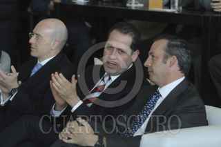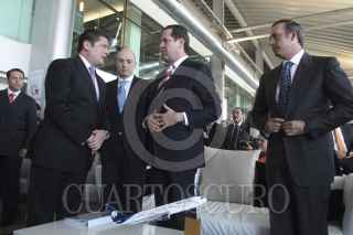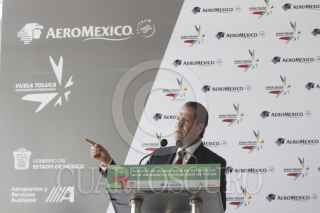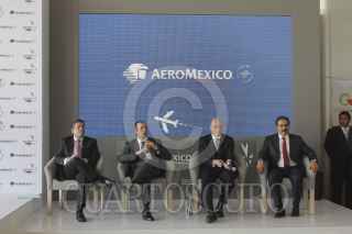 TOLUCA, ESTADO DE MÉXICO, 21NOVIEMBRE2012.- Javier García Bejos, Andrés Conesa, director de Aeromexico director del aeropuerto de Toluca y Felipe Duarte, subsecretario de Transportes de la Secretaría de Comunicaciones y Transportes durante el anuncio de operaciones de Aeromexico en el aeropuerto internacional de Toluca. FOTO: SAÚL LÓPEZ /CUARTOSCURO.COM