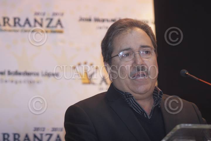 MÉXICO, D.F., 22NOVIEMBRE2012.- El escultor guatemalteco, José Toledo Ordoñez, develó junto al jefe delegacional, José Manuel Ballestero, la obra "Angel de la Paz" en la Casa de la Cultura Carranza a un costado del edificio delegacional, además tambien se inauguró la exposición "Esculturas Peligrosas" en la sala principal. FOTO: FRANCISCO RODRÍGUEZ /CURTOSCURO.COM