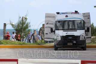 ISLA MUJERES, QUINTANA ROO., 22NOVIEMBRE2012.- Dos jóvenes de aproximadamente 20 años de edad, perdieron la vida, luego de que la balsa en la que salieron a pescar se volteara frente a la playa “Meco”. Una llamada telefónica a la Armada de México alerto a los servicios de emergencia para rescatar a los cuerpos. FOTO: CSPHOTO /CUARTOSCURO.COM