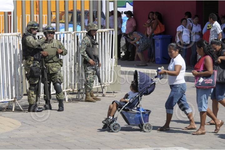 ACAPULCO, GUERRERO, 22NOVIEMBRE2012.- Soldados vigilan las inmediaciones del Centro de Rehabilitación Infantil Teletón (CRIT) Guerrero, el cual fue inaugurado por autoridades estatales. FOTO: BERNANDINO HERNÁNDEZ /CUARTOSCURO.COM