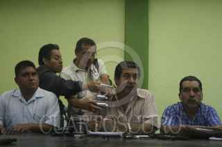 OAXACA, OAXACA, 22NOVIEMBRE2012.- Rubén Núñez, dirigente de la Sección 22 del SNTE, durante la conferencia de prensa en la que exigió la destitución de diversos funcionarios estatales por el enfrentamiento ocurrido el miércoles entre pobladores de Mitla y profesores de dicho gremio. El sectorial pidió la destitución del secretario de Seguridad Pública, Marco Tulio López Escamilla, el director del IEEPO, Antonio Iturribarría y del edil de Mitla, Alejandro Galo Bautista. Además anunció bloqueos indefinidos en tanto no se cumplan con sus demandas. FOTO: ARTURO PÉREZ ALFONSO /CUARTOSCURO.COM